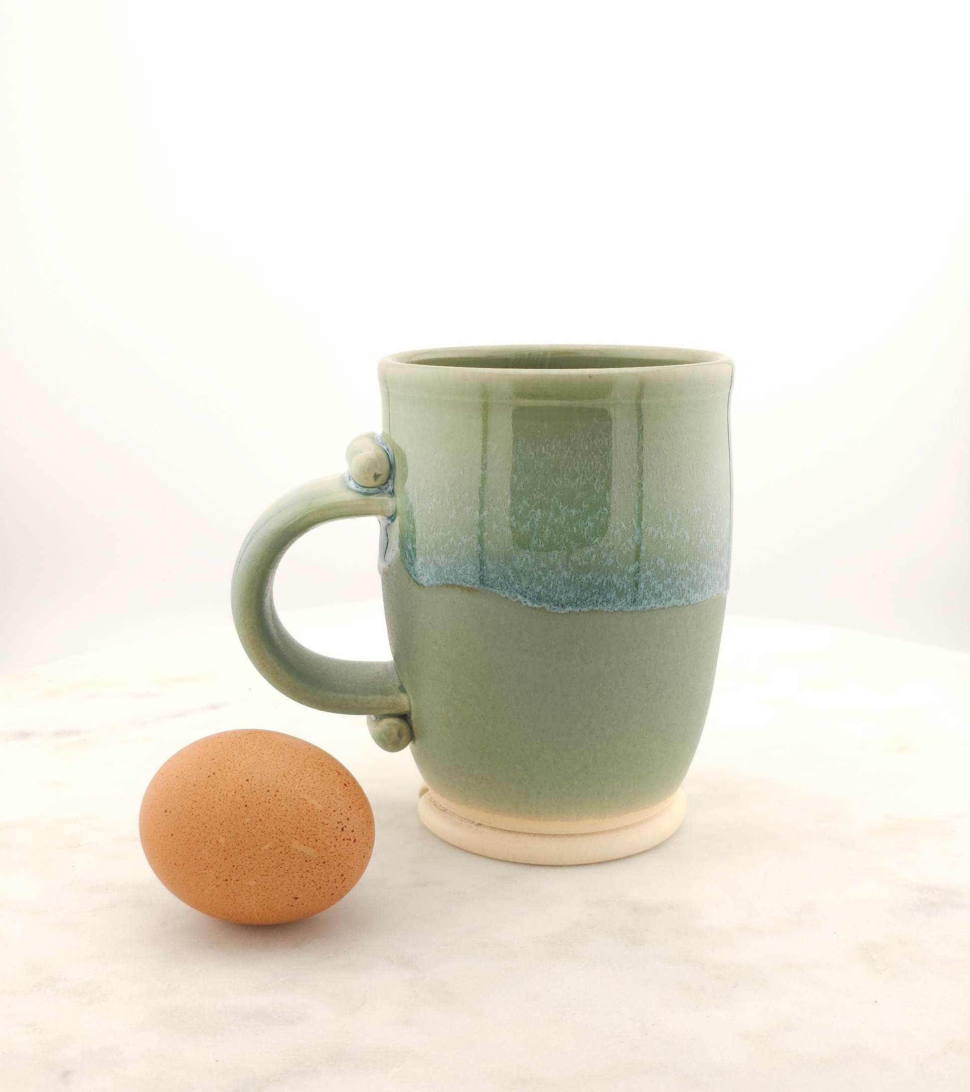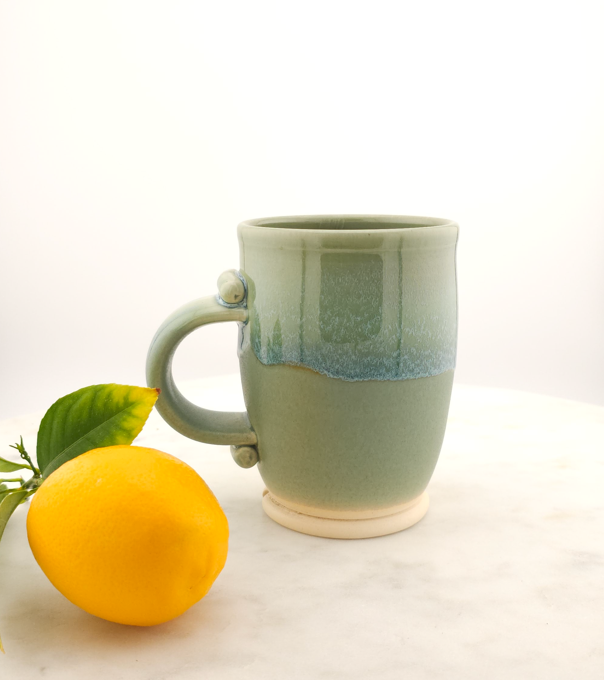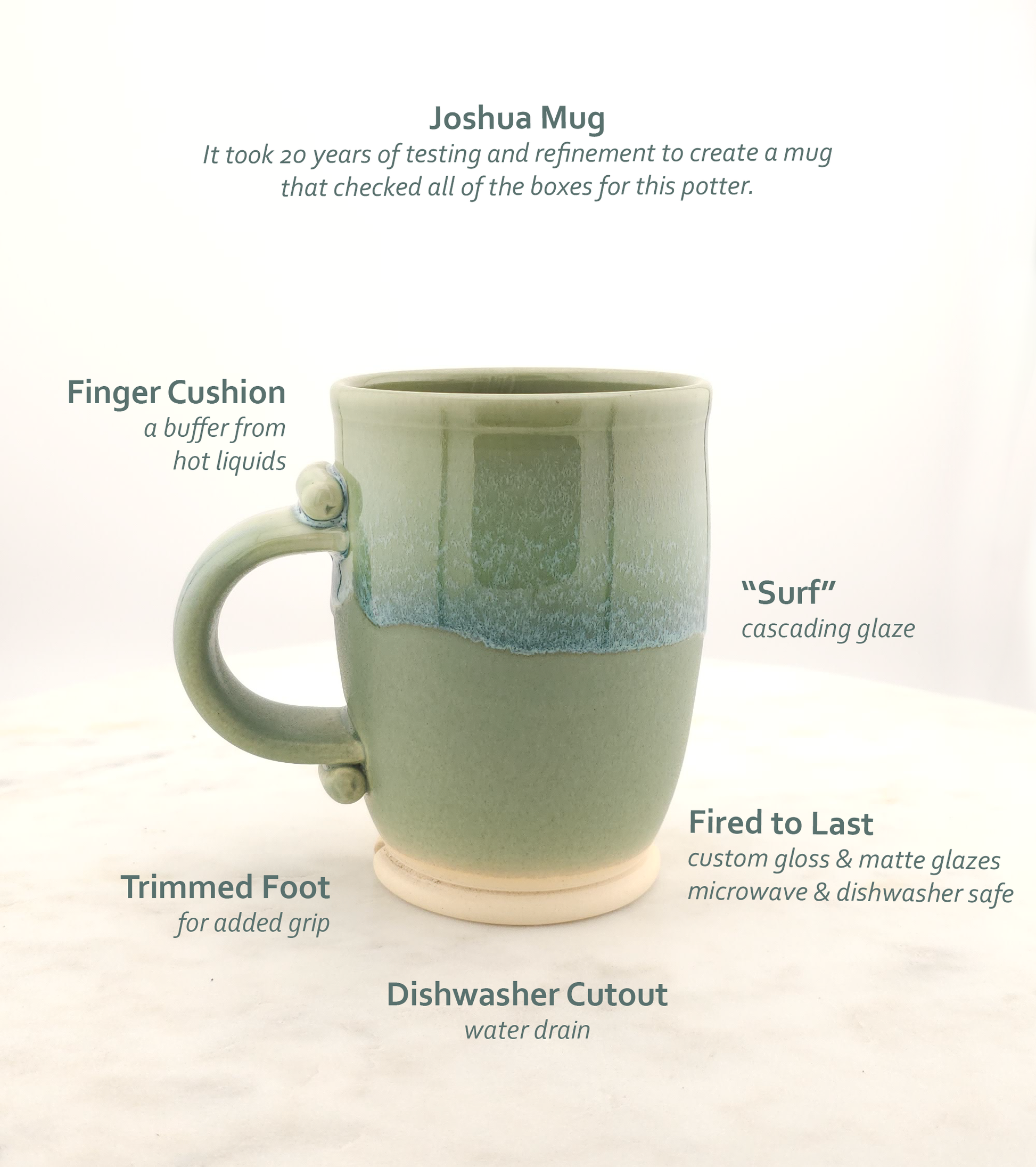 It took 20 years of testing and refinement to create a mug that checked all of the boxes for this potter. With a perfectly balanced handle, protective finger cushion, an extra sippable lip, and our signature dishwasher cutouts, these generous yet comfortably sized mugs will quickly become a coveted first choice for your morning coffee or tea routine.